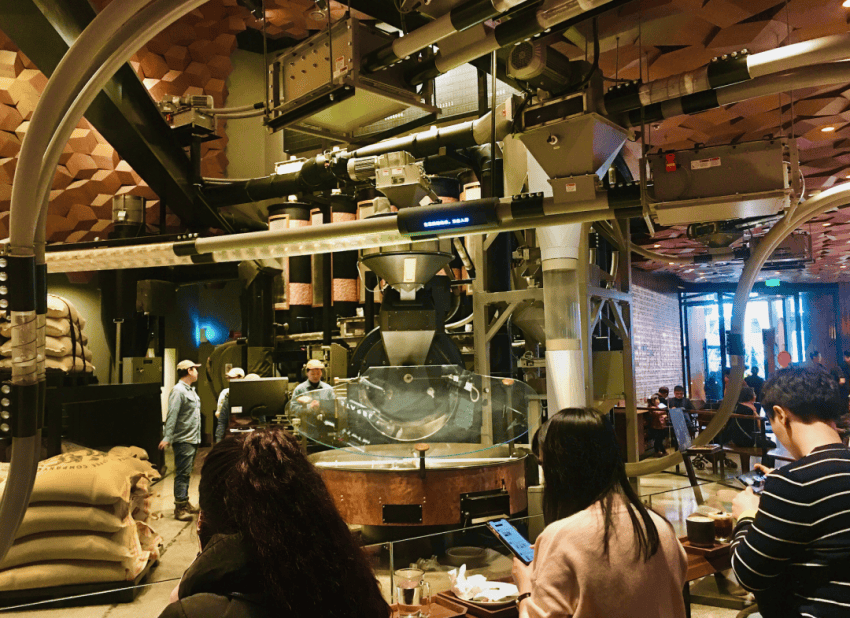 另一派是務實的門店運營人員。他們質疑這家標桿店是“討好總部的形象工程”——前期投入高達數(shù)億元,光是店里一根號稱“國內首個”的生豆管道就花掉3000萬元,每年運營成本上億元,且至今未盈利。