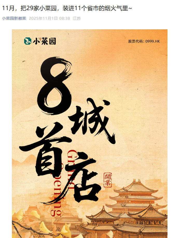 近日,小菜園通過官方微信公眾號(hào)推文宣布,11月將在全國(guó)11個(gè)省市新開29家門店,其中8座城市為品牌首店。具體來看各省市門店數(shù)量布局各有側(cè)重,河北、浙江各5家,廣東、上海各4家,北京、山東、河南各2家,天津、陜西、湖南、江西各1家。門店選址大多集中在商場(chǎng)場(chǎng)景。這波密集拓店引發(fā)網(wǎng)友關(guān)注。不少網(wǎng)友在線“催更”,“快來成都開啊”“福州求安排”“重慶什么時(shí)候有?”……